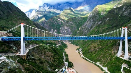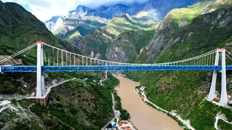滇藏铁路金沙江特大桥一桥连两隧,一端是玉龙雪山隧道,另一端是哈巴雪山隧道,将云南省丽江市与迪庆州连通。