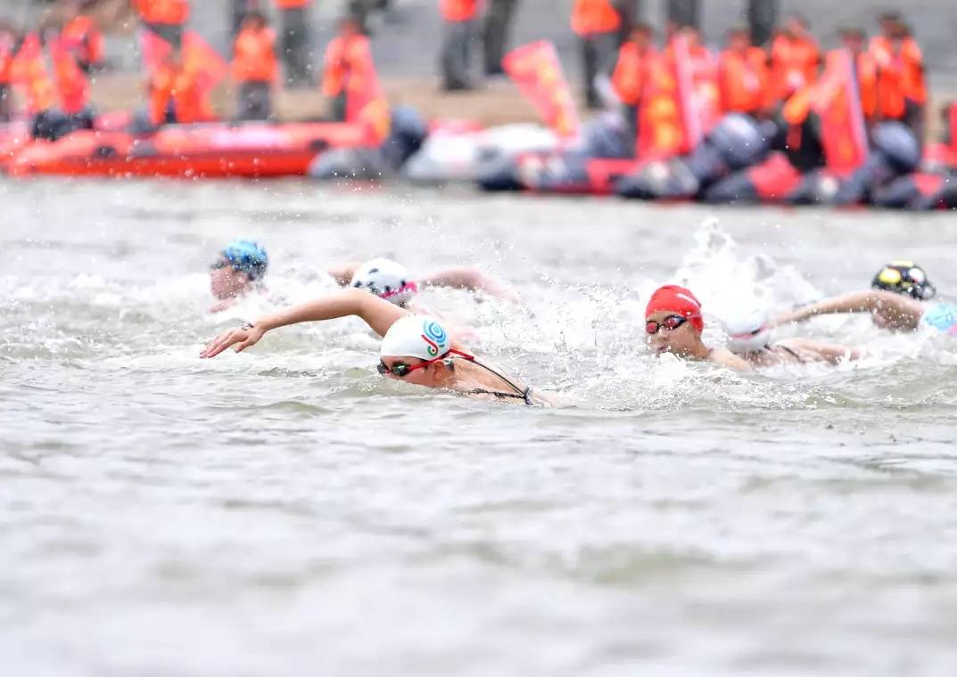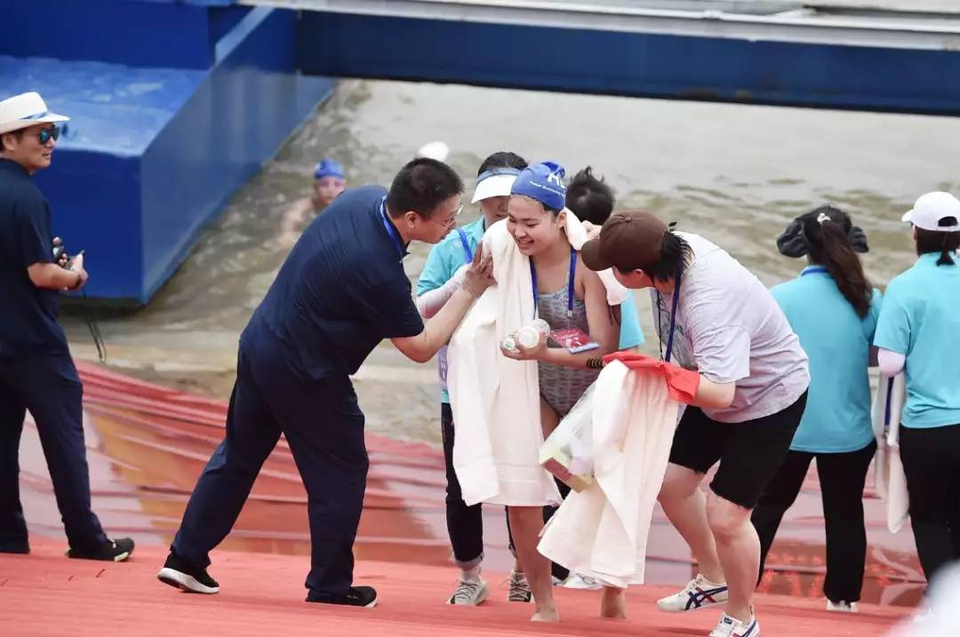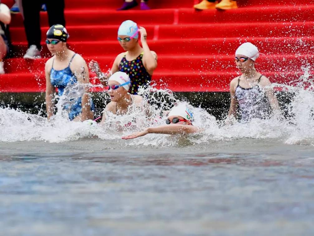 值得注意的是,自2017年开始,报名人群中出现了越来越多的年轻人,渡江节活动参与者的年龄结构逐渐年轻化。个人抢渡长江挑战赛上,游泳小将们更是挑起了大梁。15岁的黄子琪、17岁的王宝骏分别以14分03秒、12分35秒23的成绩夺得女子和男子组冠军。
