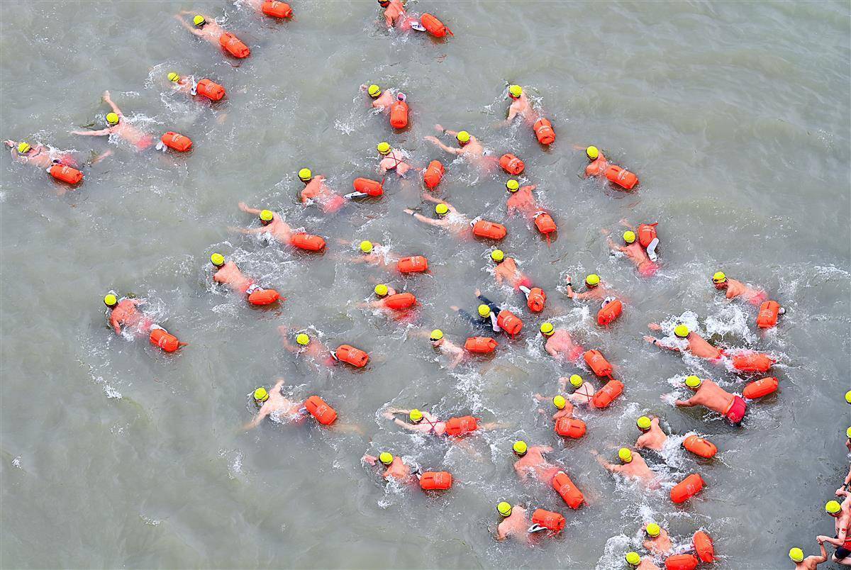 而滔滔江面上,28个群众方队共一千多名“泳”士中流击水,肆意畅游,百余艘船只来回穿梭保驾护航,场面壮观至极!