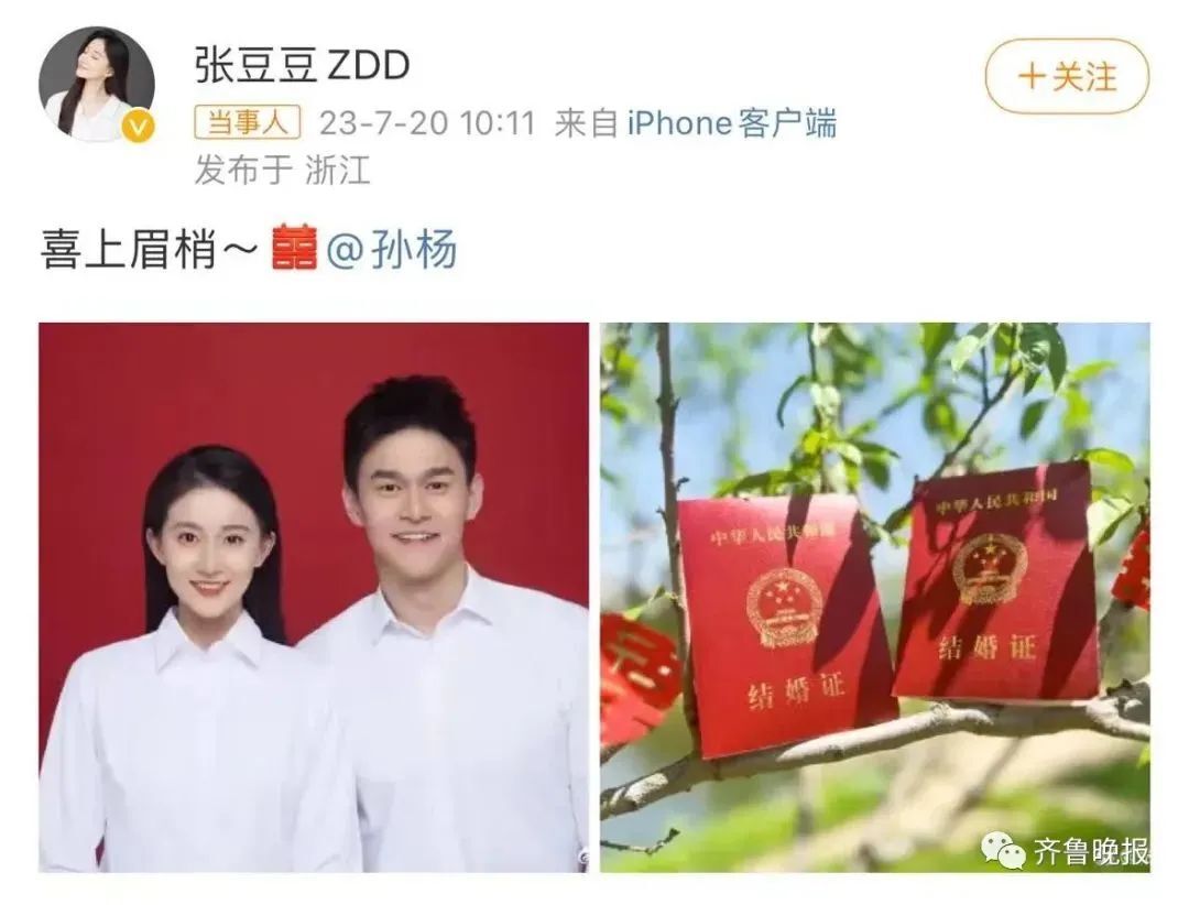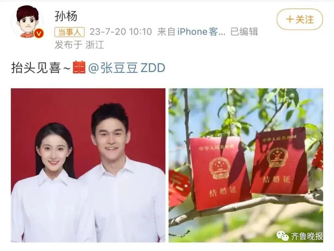 标题: 【抬头见喜】刚刚,孙杨、张豆豆官宣结婚!—2023-7-20