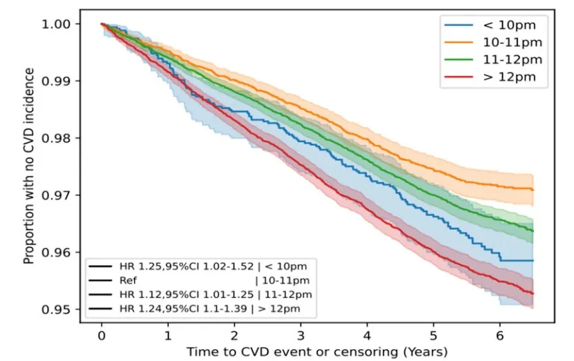 晚上10:00~10:59之间入睡的人患心血管疾病的风险最低。