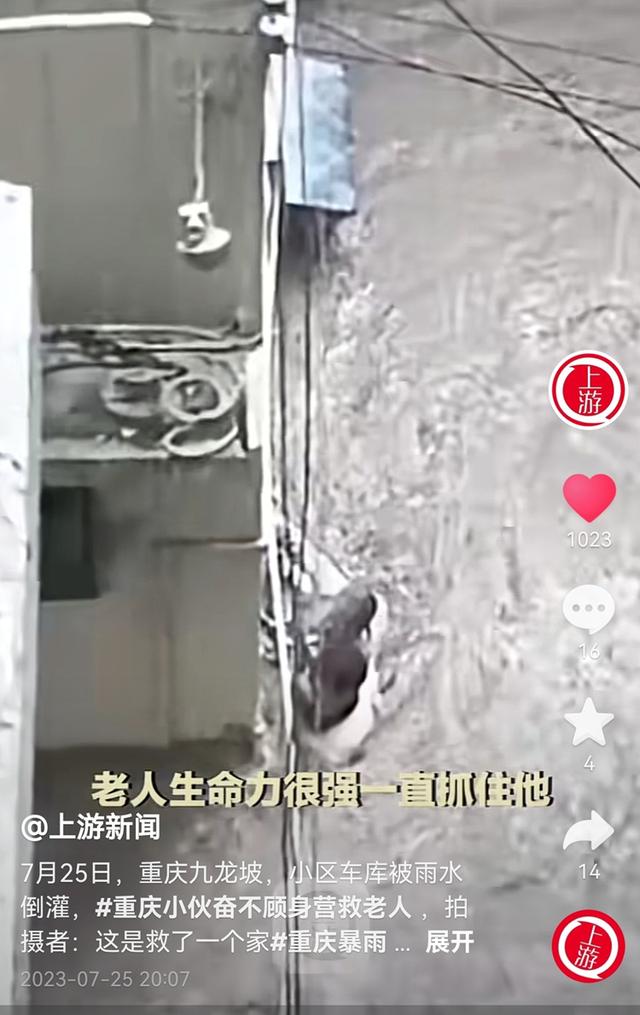 7月25日,重庆九龙坡区石坪桥虹桥邨小区,因为天降大雨,一名老婆婆不慎被水流冲走,情况十分危急。幸好一名小伙立即冲入水中,奋力将婆婆救起,避免了悲剧的发生。这一幕被楼上的邻居拍下后发布在短视频平台上,收获了无数网友的称赞。