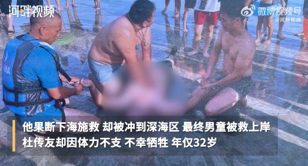 他果断下海施救,却被冲到深海区,最终男童被救上岸,杜传友却因体力不支,不幸牺牲,年仅32岁。