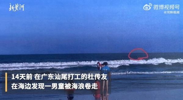 14天前,在广东汕尾打工的杜传友在海边发现一男童被海浪卷走。