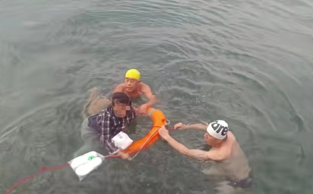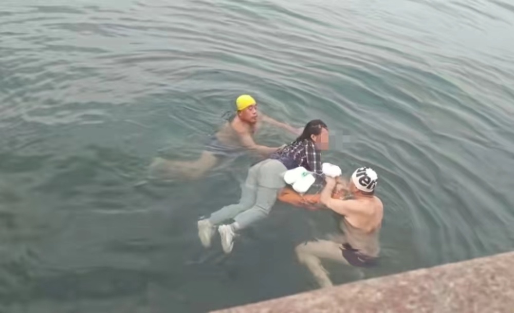 迅速救助落水女子,为青岛一群跳水大爷点赞。