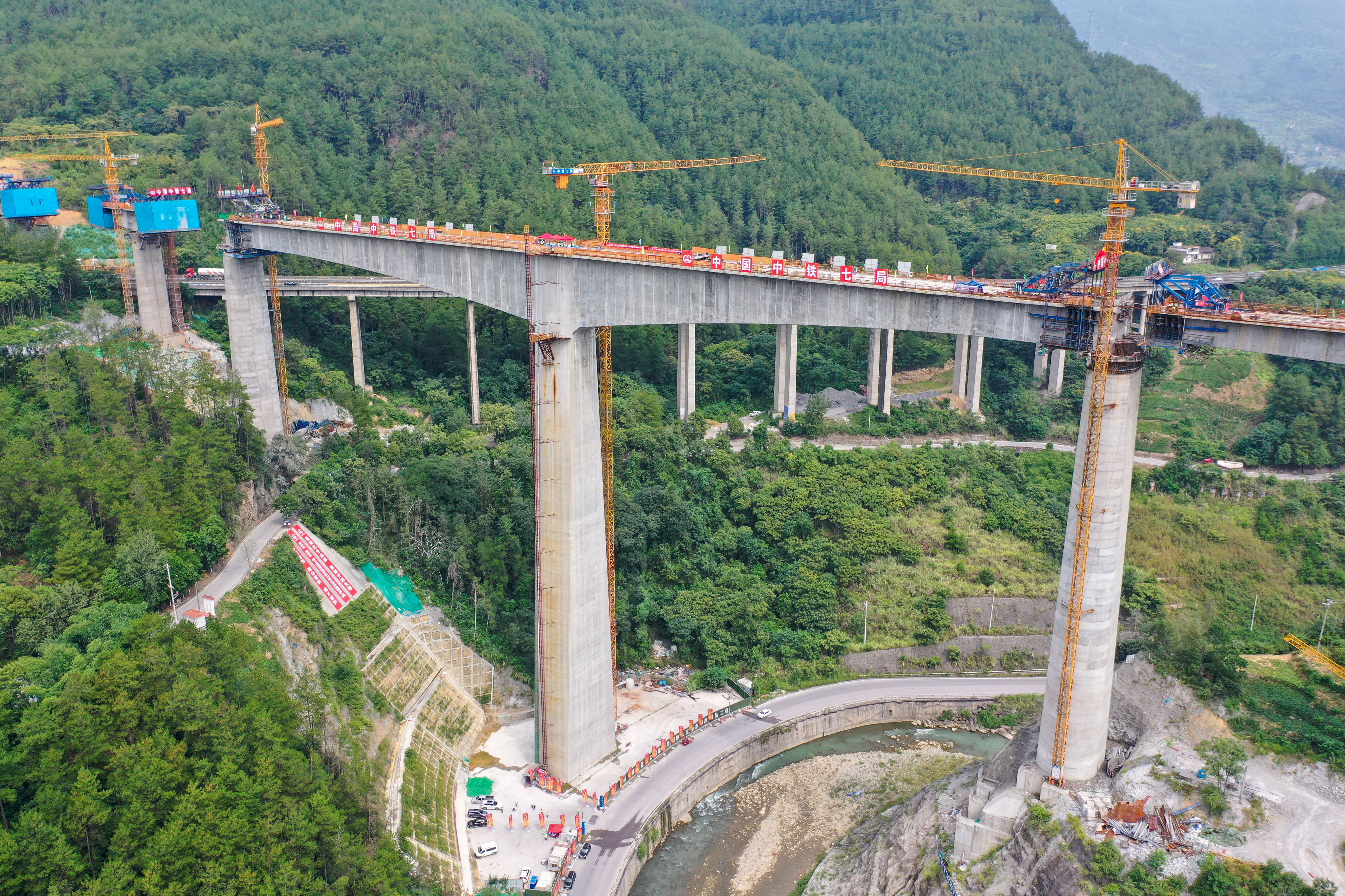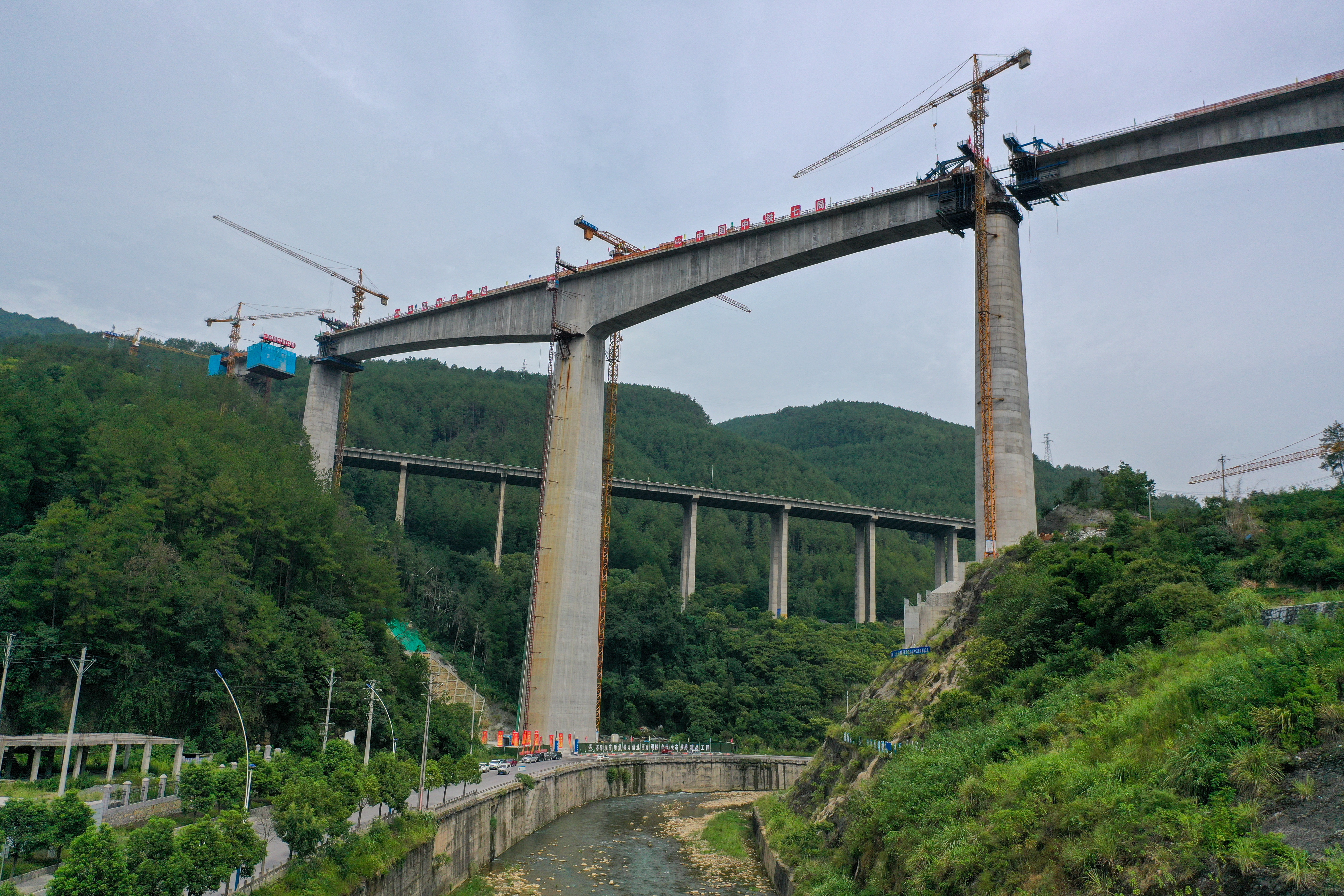 石梁河双线特大桥位于重庆市武隆区,是渝湘高铁重庆至黔江段控制性工程,大桥全长936.05米,从地面到桥面的高度为129.635米。