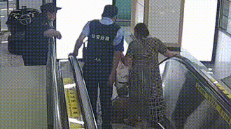 然而,就在老人刚踏上扶梯时