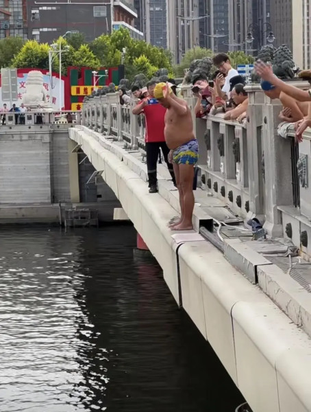 2023年8月,多段天津大爷大妈在海河跳水的视频在网上引发关注,海河狮子林桥、北安桥甚至因此成为网红“景点”,吸引了不少游客打卡。