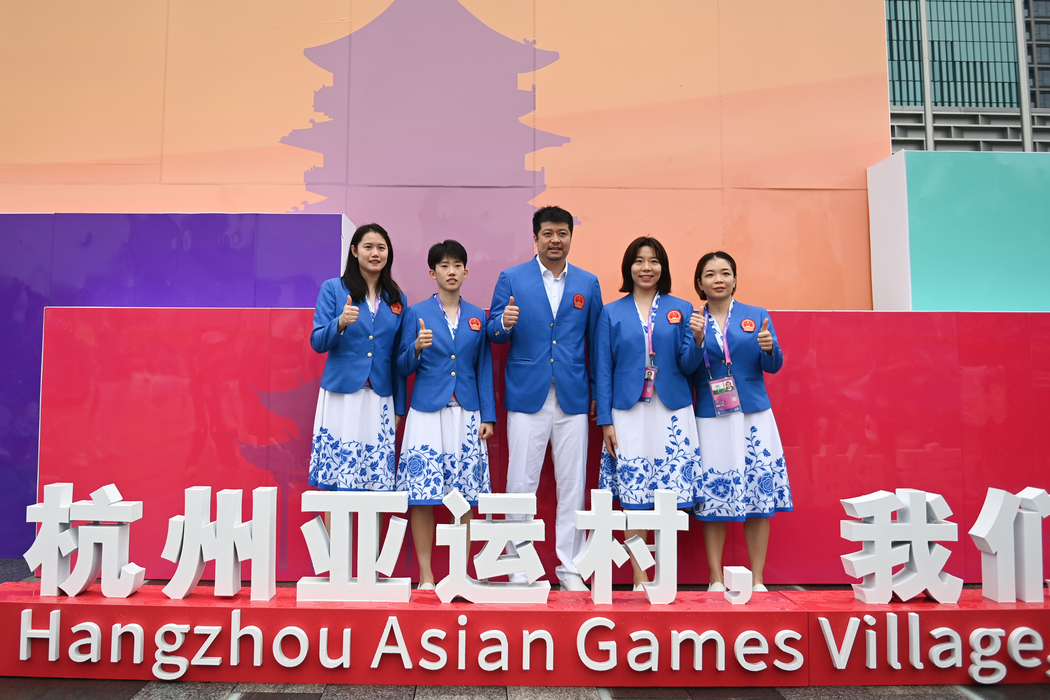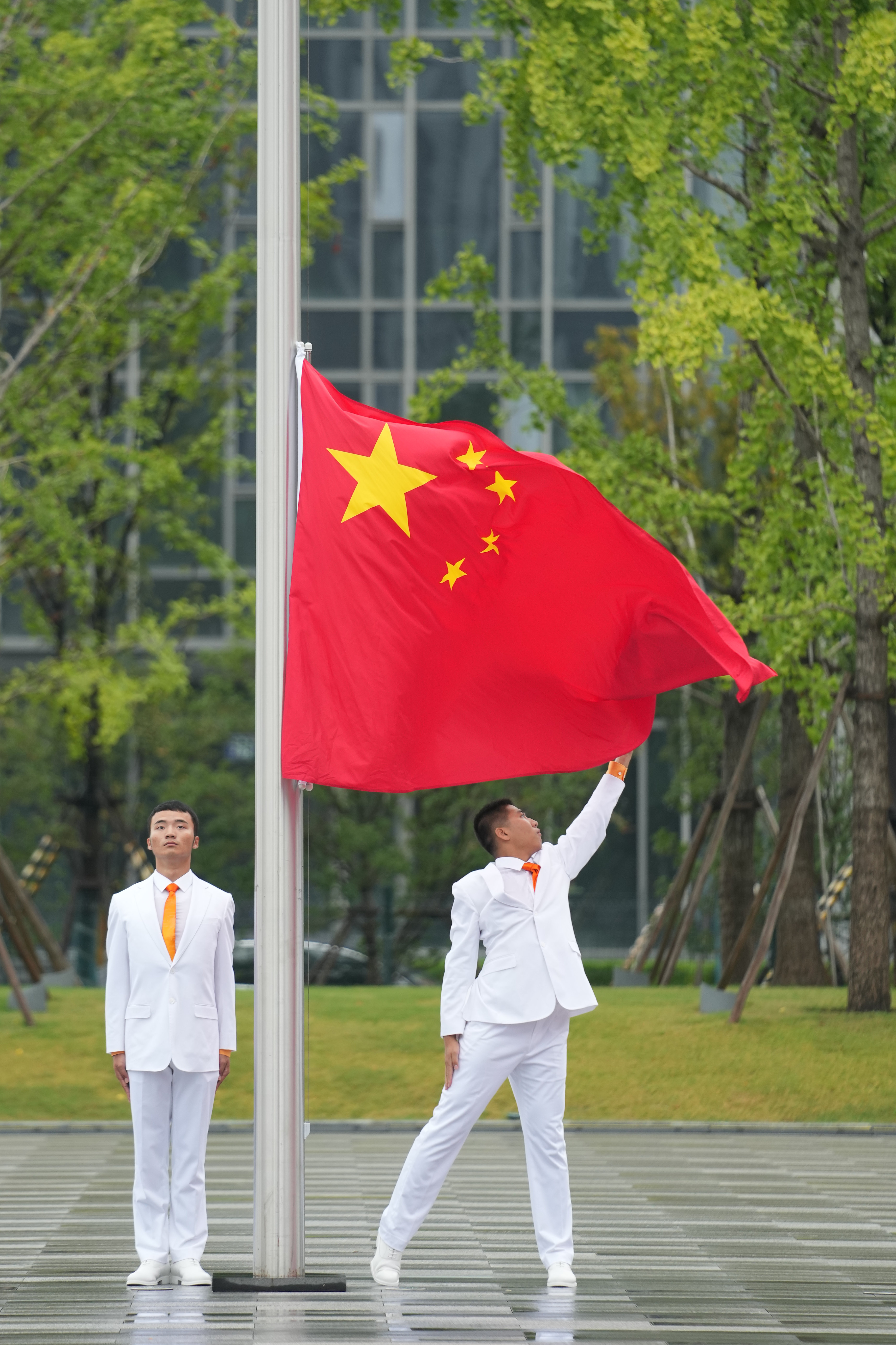 当日,杭州亚运会亚运村开村仪式暨中国体育代表团欢迎仪式在亚运村旗帜广场举行。