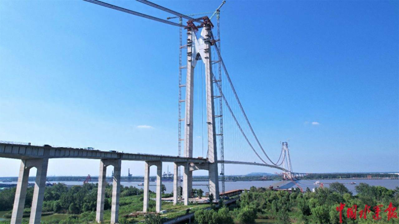 该通道关键控制性工程——仙新路长江大桥,主跨1760米,主塔高263.8米,建成后将成为国内第一、世界第三大跨度的悬索桥。
