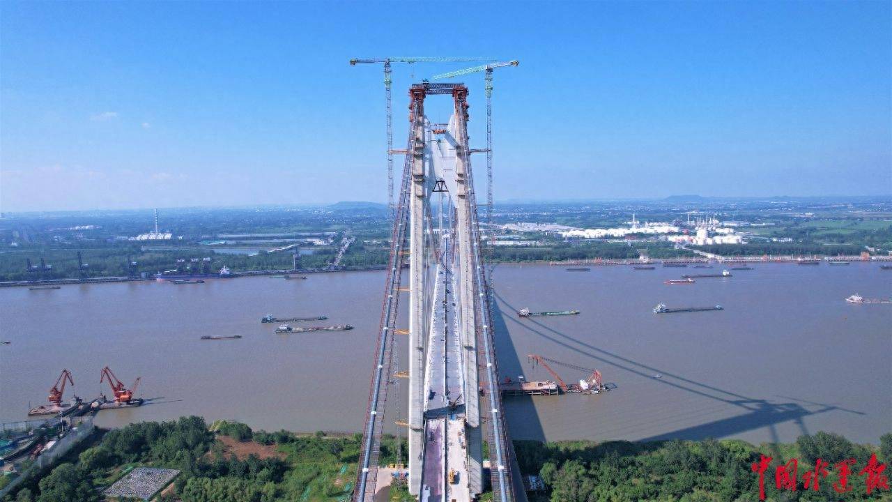 2023年,仙新路过江通道先后完成了主缆架设、乌龙山隧道贯通等重要节点。6月20日,大桥首榀钢箱梁成功吊装,此后的3个月,建设者们克服了台风影响、夏季高温、暴雨恶劣天气、建设条件复杂、长江航道封航压力大及安全防控难度高等困难。并在吊装过程对主缆和钢箱梁线形、桥塔偏位等进行实时监控,对每个吊装阶段进行分析计算,并对后续施工进行预测和指导,以最终达到设计线形。