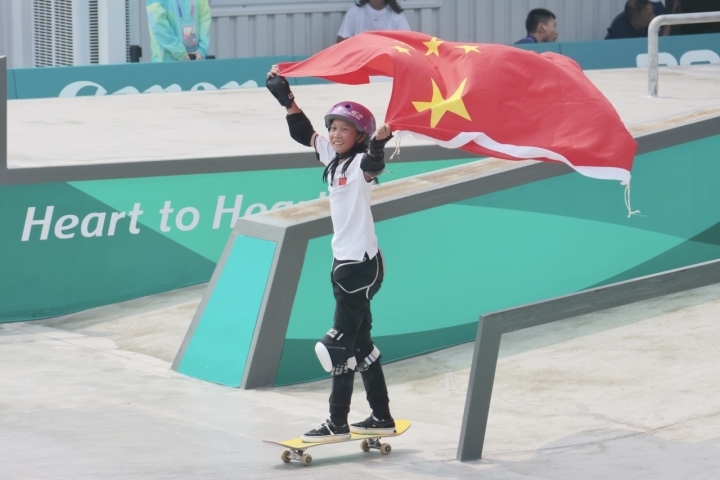 中国最年轻亚运冠军!山东13岁崔宸曦拿下滑板金牌!