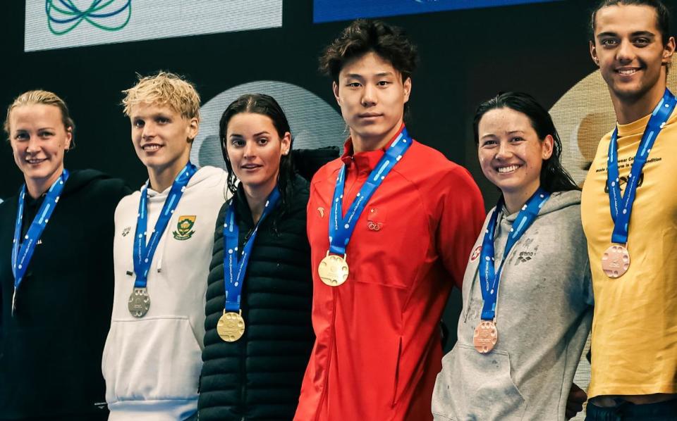 世界杯雅典站游泳比赛,中国选手覃海洋张雨霏表现突出,为中国队喝彩加油!