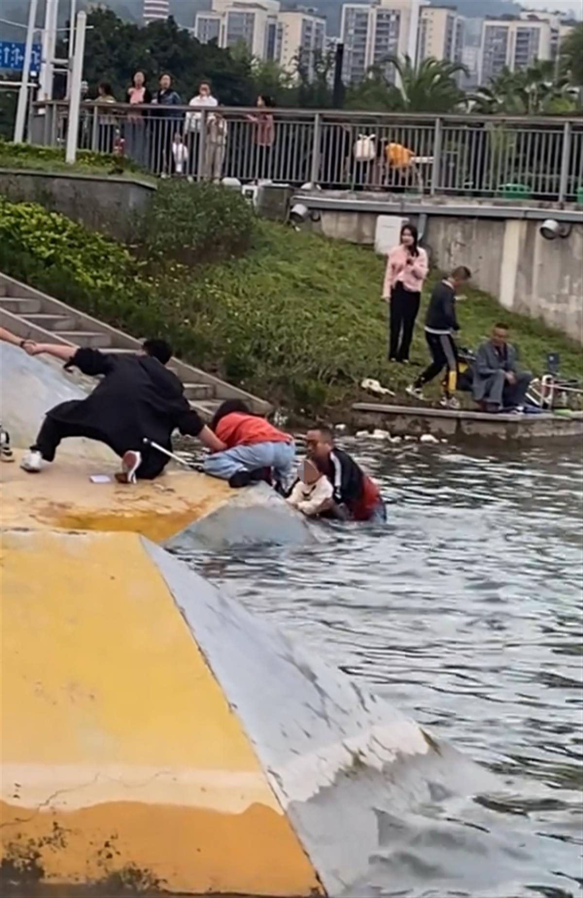 “当时我在看手机,就听到有人呼救,喊‘救我小孩’。”陈晓红说,他看到落水的小孩已经快被卷入江中,还喝了几口江水,情况危急,他将手里拿着的衣服和手机一起扔给儿子,随即飞奔跳入水中。