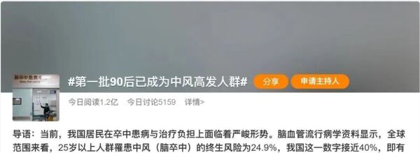 近日,话题#第一批90后已成为中风高发人群#冲上热搜,引发网友热议。