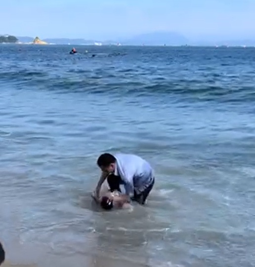 13日上午,该视频拍摄者向潇湘晨报透露,她当时刚好在帮自己的孩子拍视频突然听到有人喊,转过去就拍到这一幕。落水小孩大概两三岁,应该没有大碍,被救起后就被一名女子带走了,推测该女子应该是小孩的妈妈。救人的大哥也是来海边陪他孩子玩沙子的。