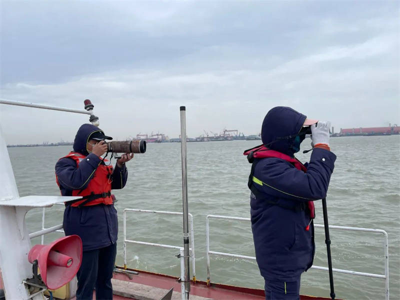 2023年11月7日至11月14日,江苏省环境监测中心组织江苏省南通环境监测中心和江苏省扬州环境监测中心,利用船只目视调查法开展了长江江苏段全线长江江豚种群调查。