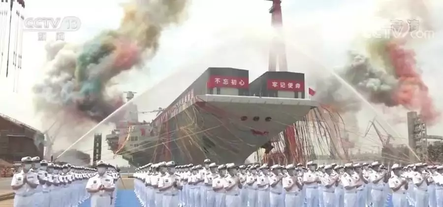 2019年12月17日,我国第一艘国产航空母舰山东舰,在海南三亚某军港交付海军,正式入列,中国迈入双航母时代。