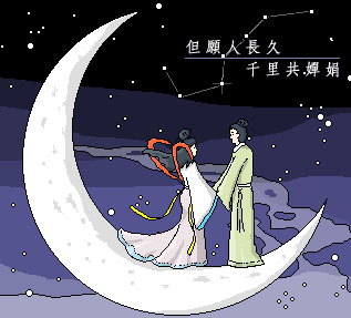 后来,每到农历七月初七,相传牛郎织女鹊桥相会的日子,姑娘们就会来到花前月下,抬头仰望星空,寻找银河两边的牛郎星和织女星,希望能看到他们一年一度的相会,乞求上天能让自己能象织女那样心灵手巧,祈祷自己能有如意称心的美满婚姻,由此形成了七夕节。